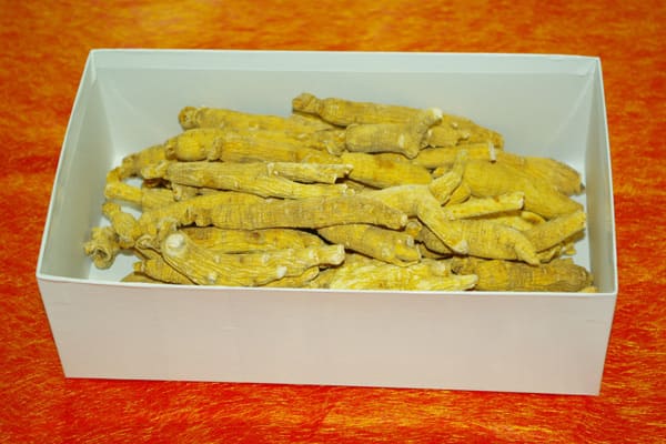 高麗人参の水参(泥を落として綺麗に洗った生人参のことです)を天日で干して乾燥させたものです。紅参も好まれますが高麗人参本来の風味が楽しめこちらを愛用されるファンの方も大変多いです。煎じて飲んだり、煮込み料理などによく使われます。4年〜5年根を使用してます。