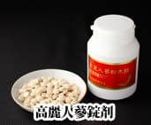 - ①高麗人参の紅参4年から6年根の胴体、胴の皮部分、足の付け根と言った、サポニン、ミネラル分を多く含む部分を主原料にした製品